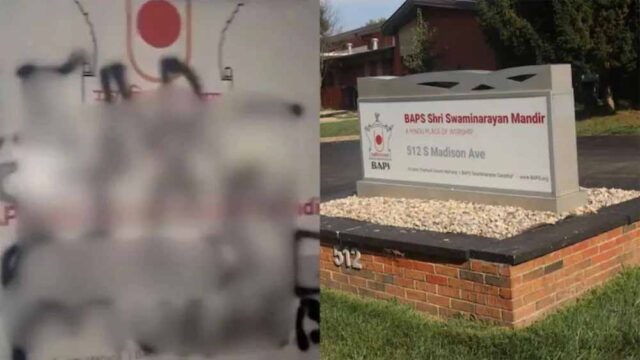अमेरिका में हिंदू मंदिरों को लगातार निशाना बनाया जा रहा है, जहां ऐसी ही एक और घटना सामने आई है। ताजा मामले में कुछ बदमाशों ने इस हफ्ते की शुरुआत में इंडियाना में एक हिंदू मंदिर को क्षतिग्रस्त कर दिया, जहां मंदिर की नेमप्लेट को बिगाड़ गया। बदमाशों द्वारा मंदिर परिसर की दीवारों पर भारत और हिंदू विरोधी स्लोगन भी लिखे गए। यह घटना 10 अगस्त को ग्रीनवुड सिटी स्थित बीएपीएस स्वामीनारायण मंदिर में हुई।