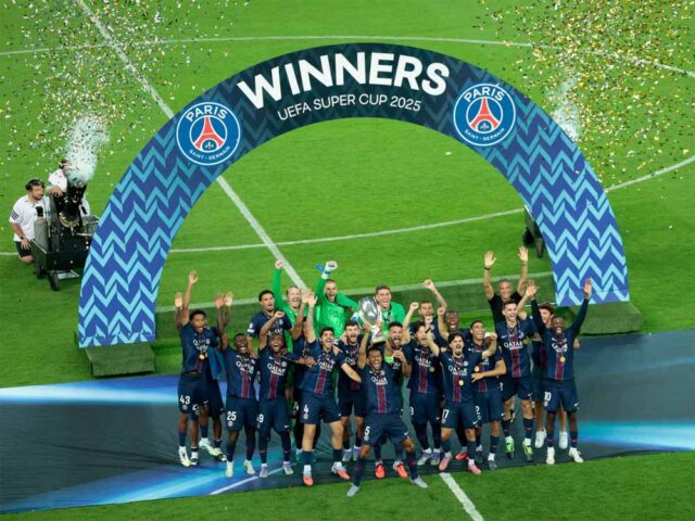 चैंपियंस लीग के चैंपियन पेरिस सेंट जर्मेन (पीएसजी) ने अपना स्वप्निल अभियान जारी रखा है। साल 2025 में पीएसजी का दबदबा फुटबॉल में कायम है। यूईएफए सुपर कप के फाइनल में बुधवार को पेनल्टी शूटआउट में पीएसजी ने टॉटेनहैम को हराकर खिताबी जीत हासिल की। इसी के साथ फ्रांस के इस फुटबॉल क्लब ने साल 2025 की पांचवीं ट्रॉफी उठाई है।