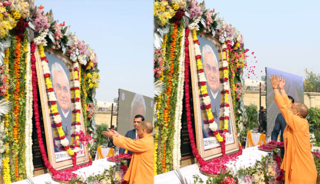 मुख्यमंत्री योगी आदित्यनाथ ने लोकभवन में पूर्व प्रधानमंत्री ‘भारत रत्न’ अटल बिहारी वाजपेयी जी की प्रतिमा पर की पुष्पांजलि