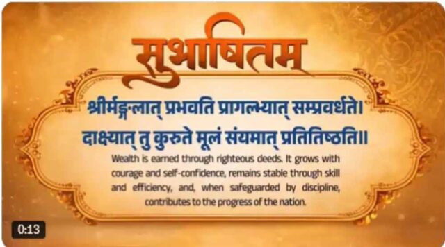कुल मिलाकर प्रधानमंत्री इस श्लोक के जरिए यह कहना चाहते हैं कि समृद्धि और सफलता पहले अच्छे कर्मों से शुरू होती है, फिर आत्मविश्वास और परिपक्वता से बढ़ती है, कुशलता से मजबूत होती है और अंत में संयम/अनुशासन से हमेशा के लिए बनी रहती है. यह श्लोक जीवन में सफलता के चार चरणों को बहुत सुंदर तरीके से दर्शाता है. शुरूआत अच्छे कर्म से, विकास आत्मविश्वास से, मजबूती कुशलता से और स्थिरता संयम से. बहुत प्रेरणादायक श्लोक है!