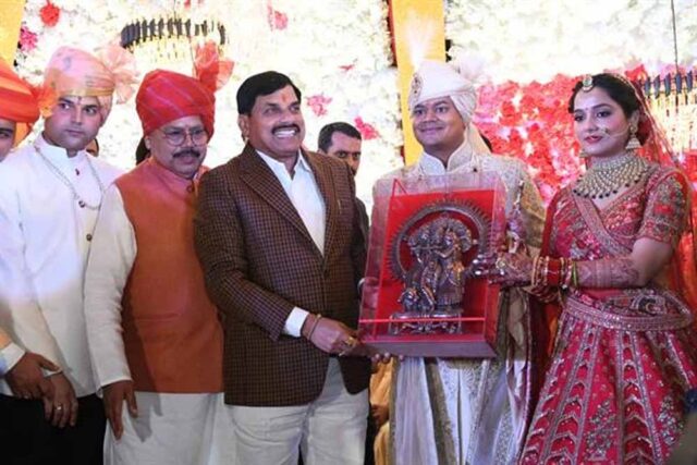 मुख्यमंत्री डॉ. यादव ऊर्जा मंत्री तोमर के सुपुत्र रिपुदमन के विवाह समारोह में शामिल हुए वर-वधु को दिया आशीर्वाद