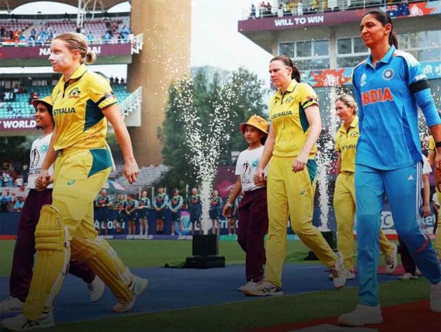 रेणुका सिंह ठाकुर के पहले ओवर में 18 रन गए, लेकिन अगले ही ओवर में श्रेयंका पाटिल ने भारत को पहली सफलता दिलाई। जॉर्जिया वॉल 5 गेंदों में एक छक्के की मदद से 10 रन बनाकर आउट हुईं। उनका कैच रेणुका ने ही पकड़ा। पहले ओवर में काफी रन लुटाने वाली रेणुका सिंह ने 6 रन के निजी स्कोर पर बेथ मूनी को पवेलियन भेजा और भारत को दूसरी सफलता दिलाई। श्रेयंका पाटिल ने अगले ही ओवर में भारत को एक बड़ी सफलता दिलाई, जब उन्होंने एलिस पैरी को क्लीन बोल्डकर दिया। वे 3 गेंदों में एक रन बनाकर आउट हुईं।